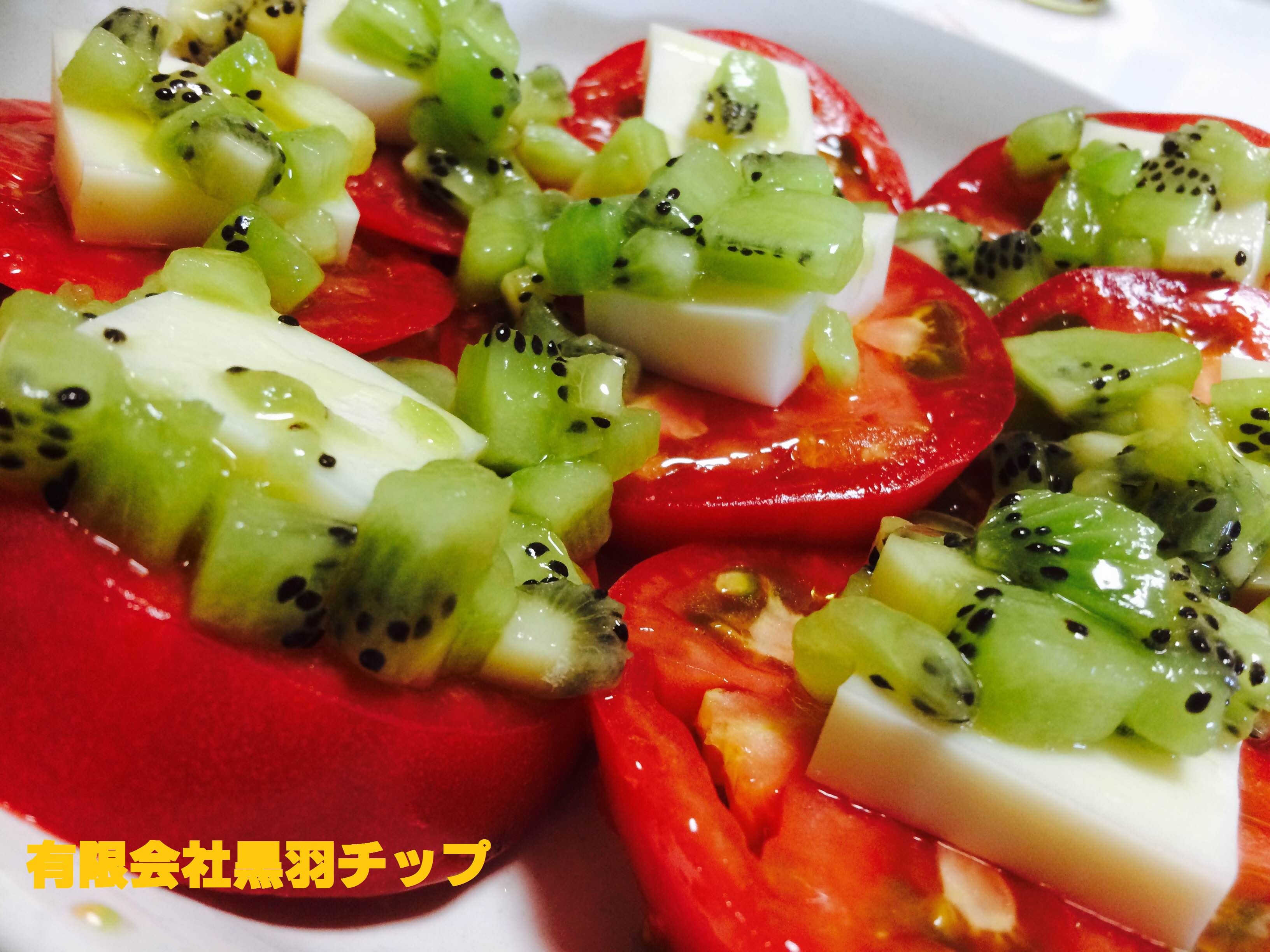 トマトのサラダです。チーズにレモン風味のキウイドレッシングをかけました。