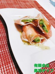 アボカドとたまねぎとチーズを生ハムで巻いてみました。