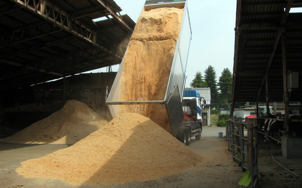 取引先にオガを納入(畜産用オガの製造・販売)